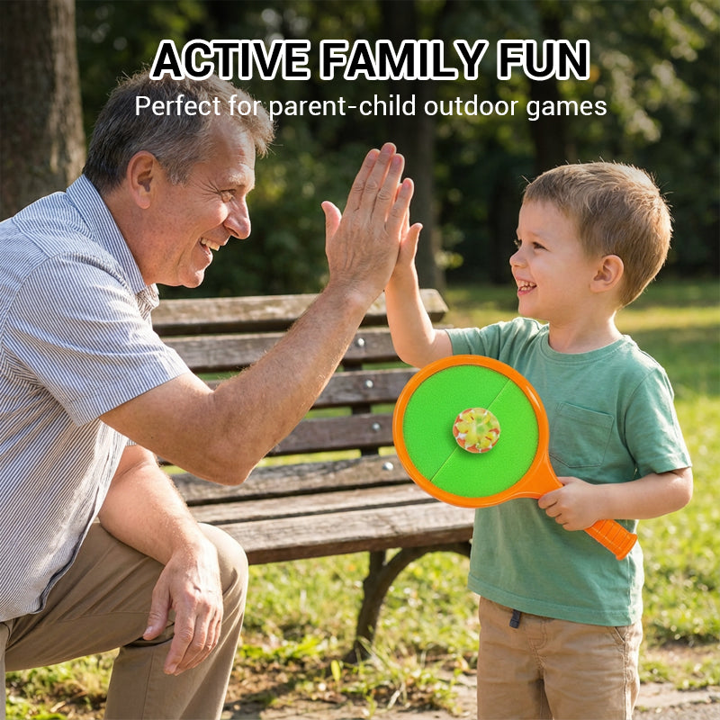 DUAL-SIDED PADDLES - Enjoy two exciting game modes with a single paddle. One side features a sticky surface for catching, while the other is smooth for different toss games, providing versatile, long-lasting fun.