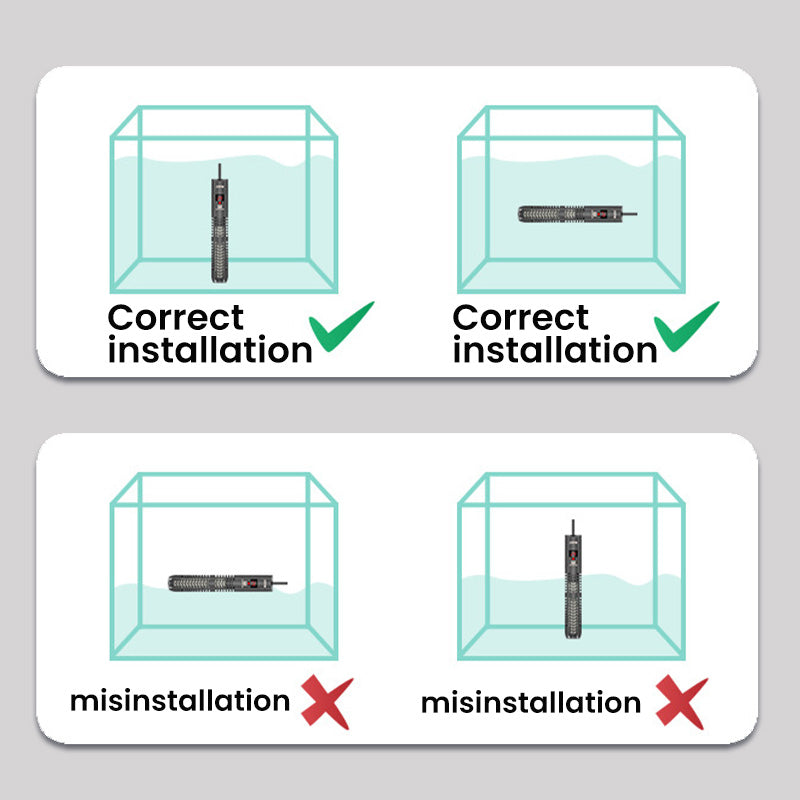 - Ensure the heater is fully submerged in water before turning on the power to avoid overheating damage.