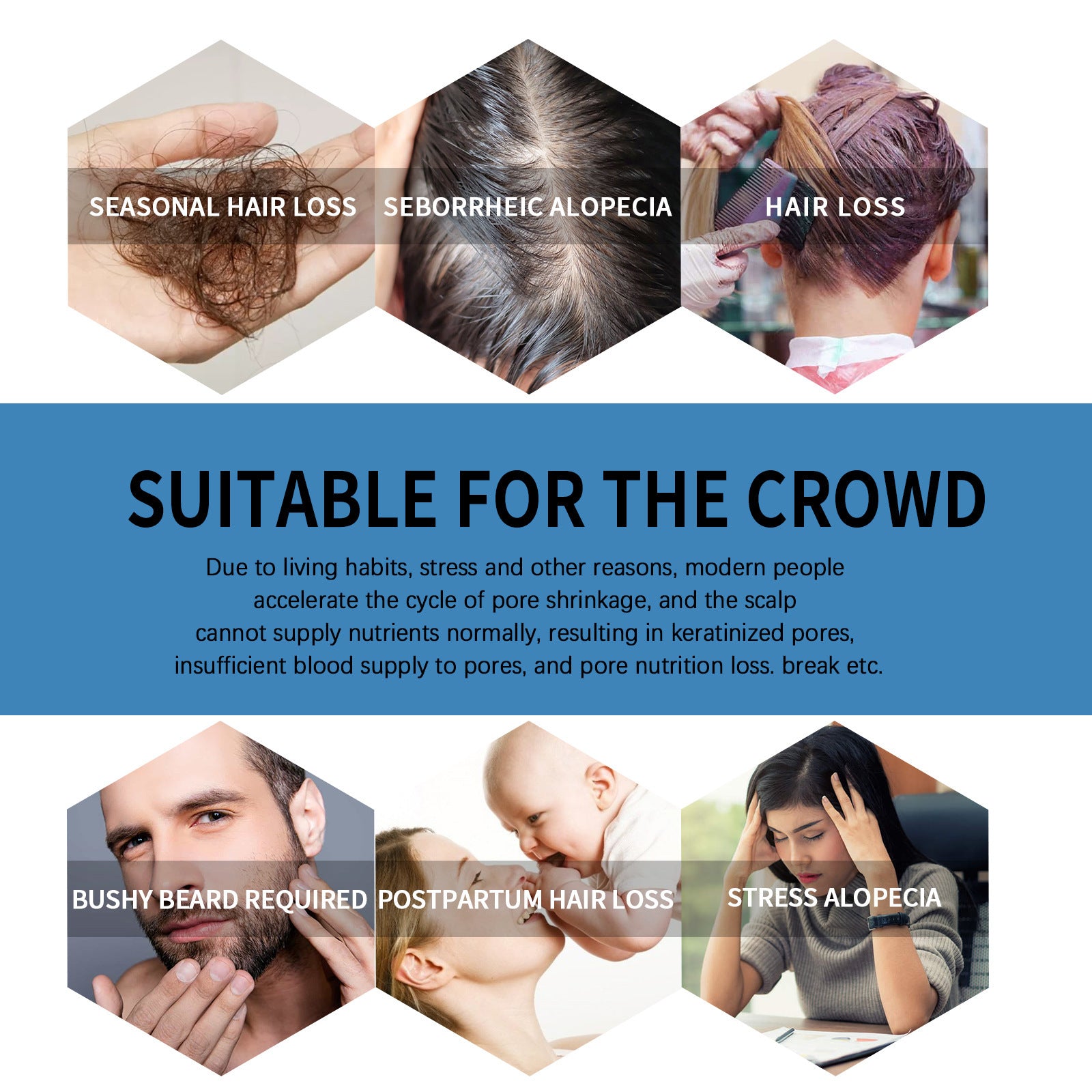 Ideal for people experiencing seasonal hair loss, seborrheic alopecia, stress-related hair loss, or postpartum hair loss. Also perfect for those wanting to grow a fuller beard.