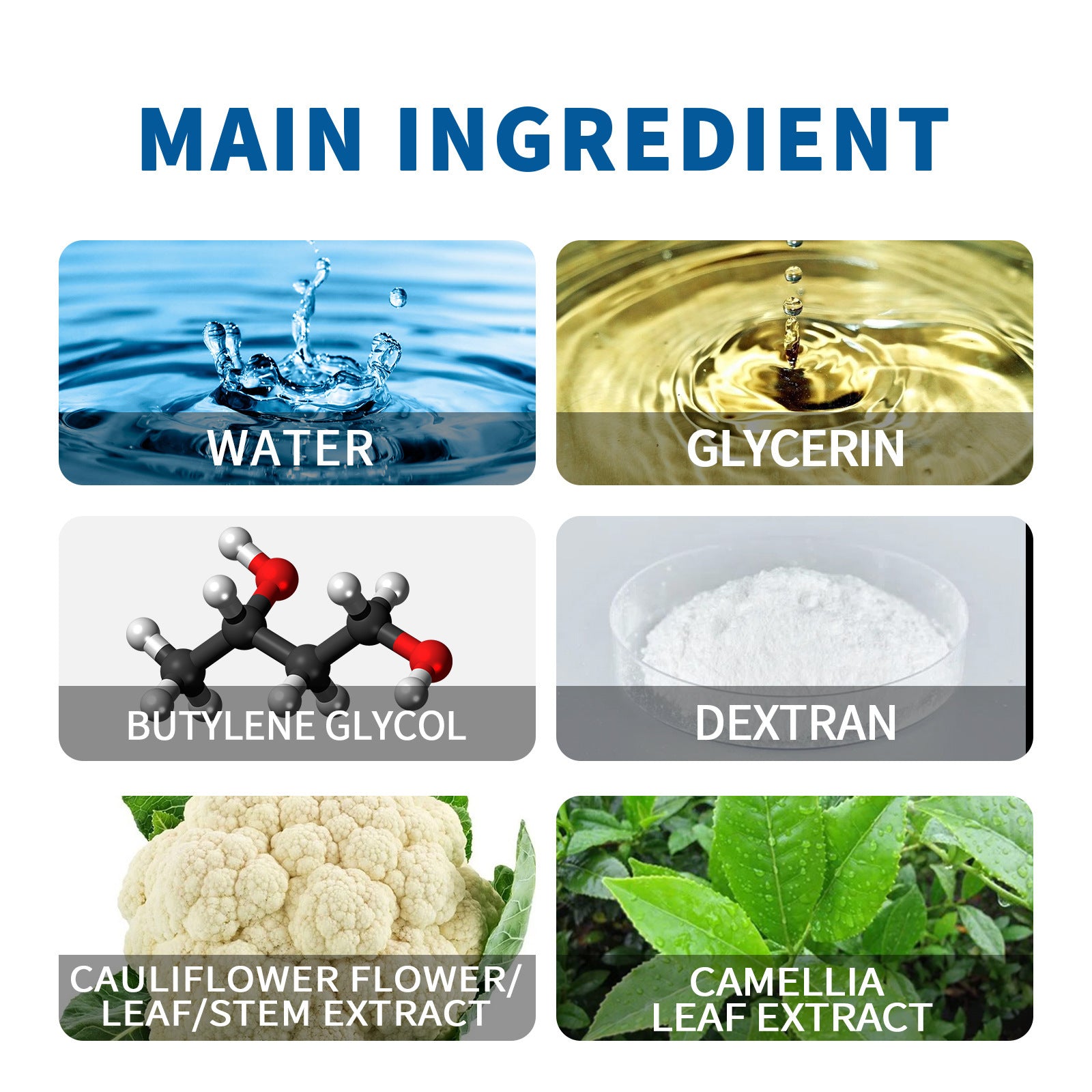 Formulated with high-quality ingredients such as water, glycerin, butylene glycol, dextran, cauliflower extract (flower/leaf/stem), and camellia leaf extract. These ingredients work synergistically to provide gentle yet effective hair and scalp care.