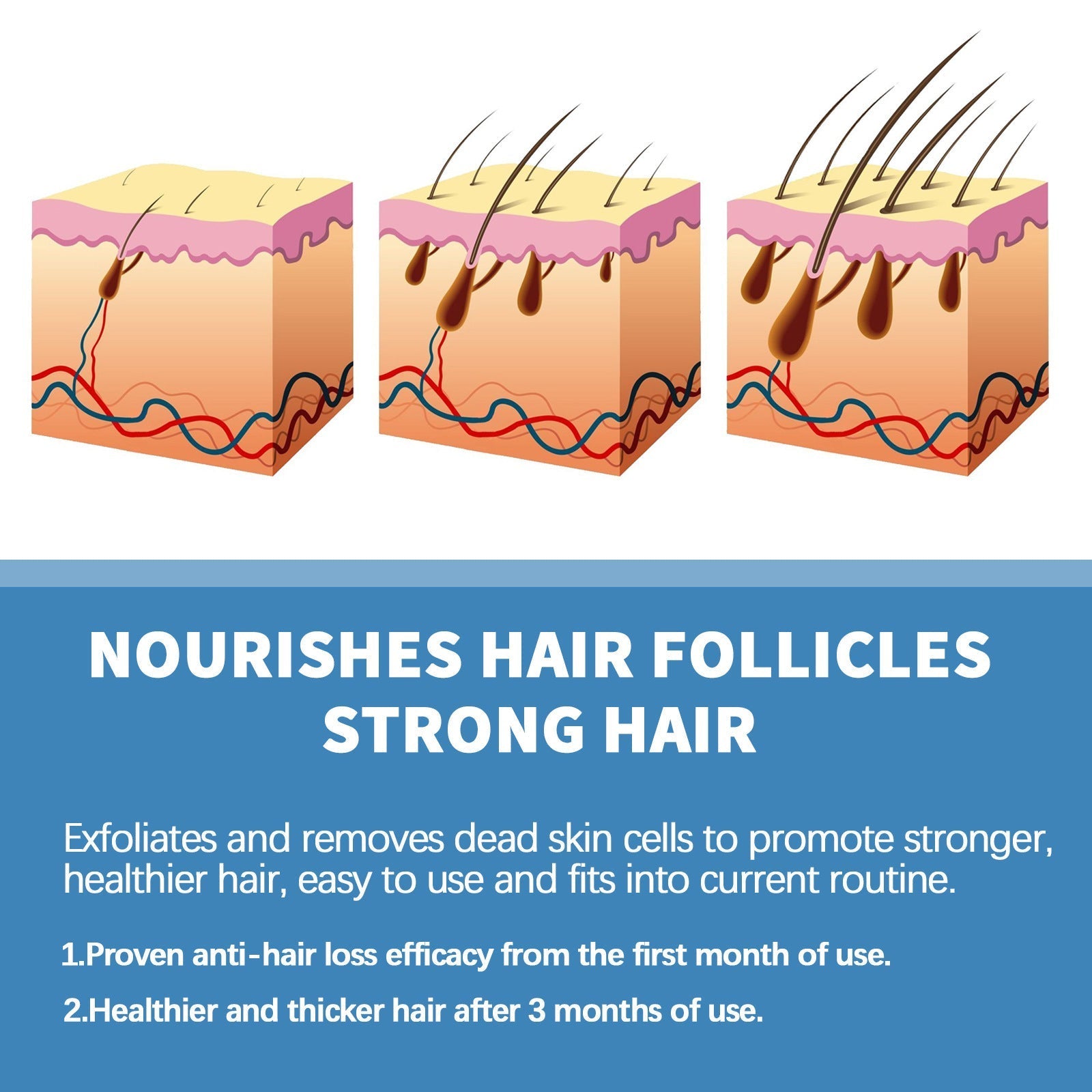 Effectively nourishes hair follicles, exfoliates dead cells, and improves the scalp microenvironment, increasing follicle vitality for stronger hair.