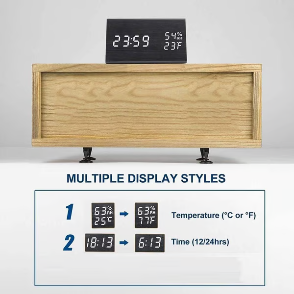 Wooden Alarm Clock WIth Temperature Humidity Sensor