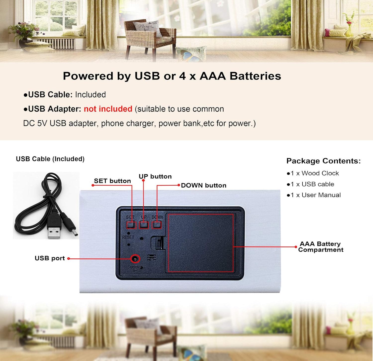 - Simple and elegant design. The LED digital display on the wooden surface allows you to easily read the entire room regardless of day or night. This wooden digital clock is also an eye-catching decoration for homes and offices, allowing you to get in touch with nature.
