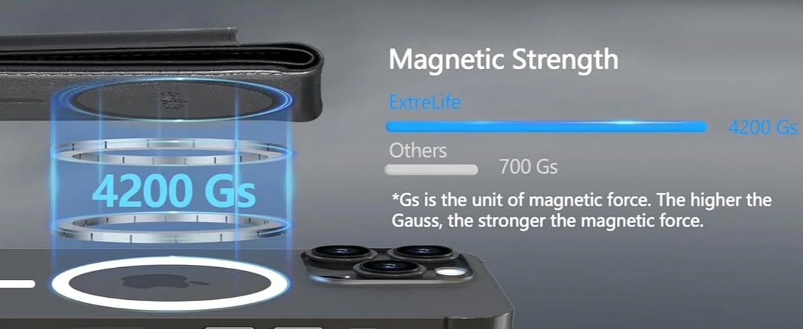 【Super Strong Magnetic Force】 ExtreLife for magsafe wallet features strong built-in magnets and the magnetic force is up to 4200Gs, 6x stronger than official magnetic wallet allow it to effortlessly snap into place on the back of your iPhone, no worry about the cards falling off.