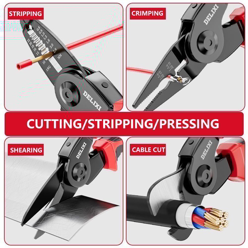 - 5-in-1 Design: The combo has five types of tools in one (such as pliers, scissors, cable cutters, wire strippers, and crimping heads) that are flexible and can be used in different jobs.